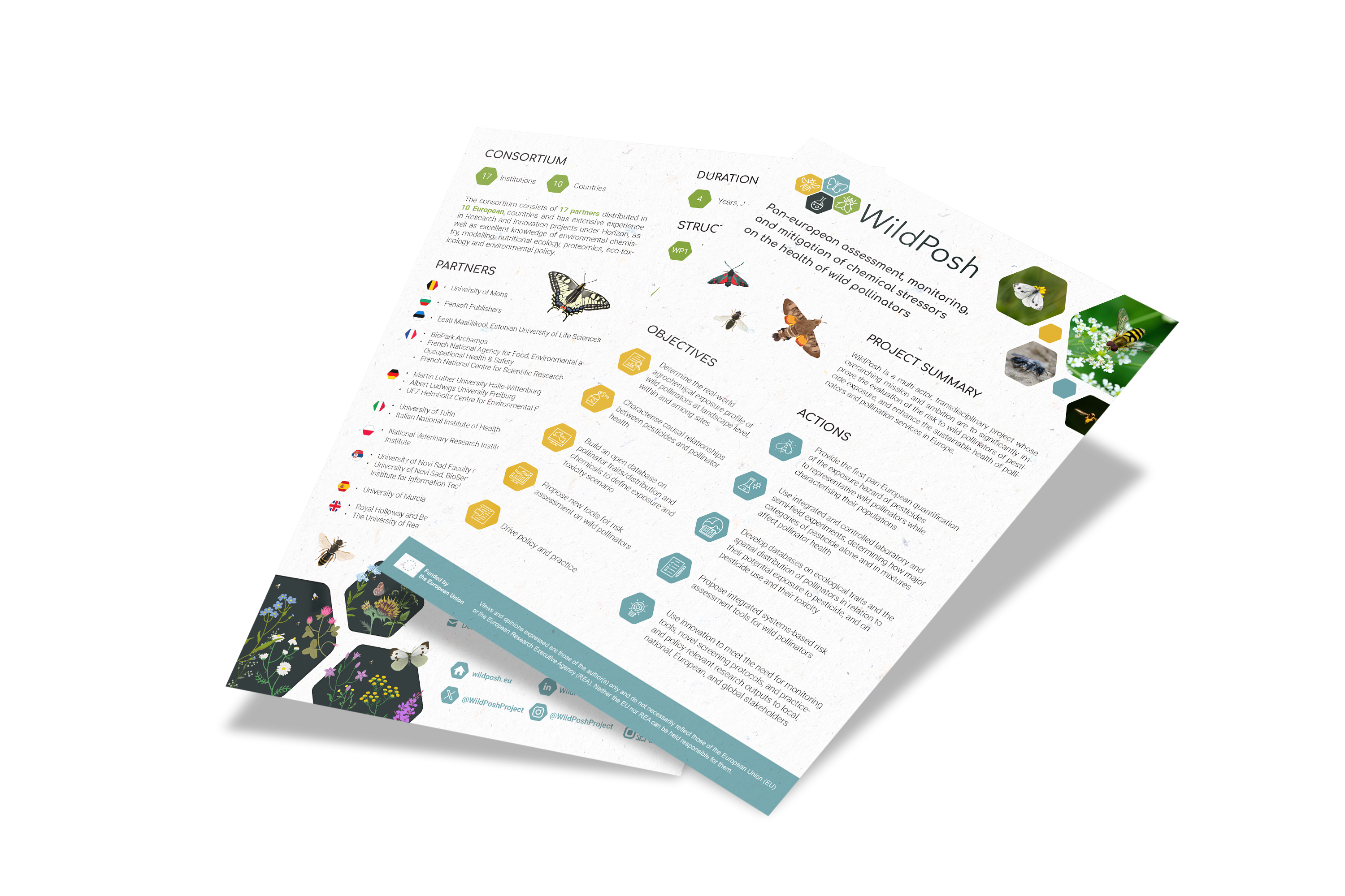 The toolkit includes a two-pager (in English and Spanish), a poster, a roll-up banner, an introductory presentation, a WildPosh logo sticker, a set of illustrations of WildPosh species, and a series of infographics explaining each WildPosh work package. All materials are designed by Pensoft Publishers, the project’s communication and dissemination partner.